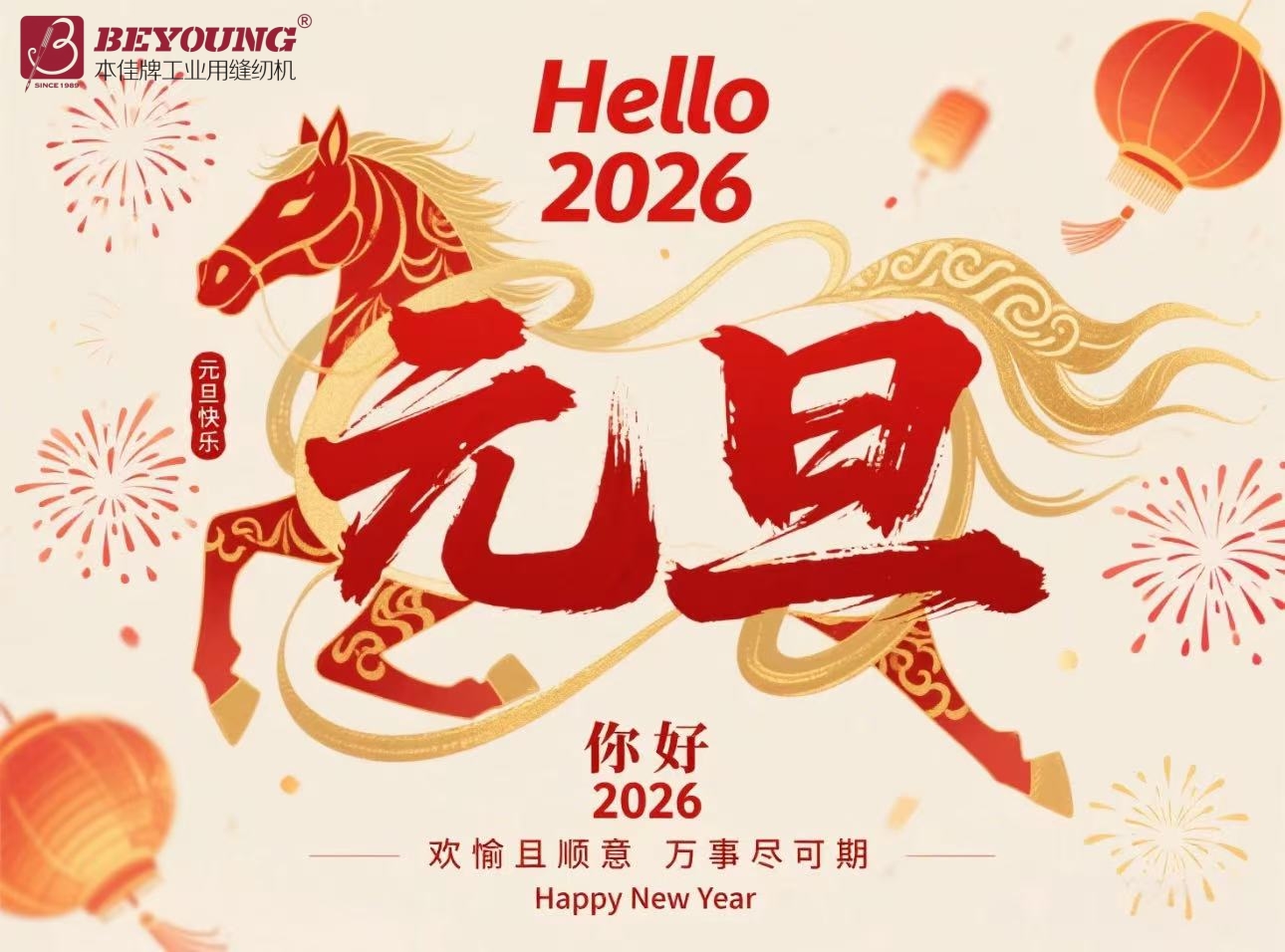 The sun moves eastward, the moon westward, the day and night turn in their cycle, and in the blink of an eye, another new year arrives. Thank you all for your strong support and care for BEYOUNG over the past year! In the new year, BEYONG will always adhere to the principles of customer first, quality first, and service first, keeping pace with you and continuing to provide high-quality products and services to the market! On New Year's Day, we embark on a new journey, with the swift steed stepping into spring! Farewell to the past of 2025, ride forth with passion and pursue our dreams 2026 will be a prosperous and vibrant year. The new year arrives, and the journey begins. All employees of BEYOUNG Automation Technology extend our best wishes to you for the Year of the Horse, hoping that everything you undertake will be successful and your grand plans will flourish.